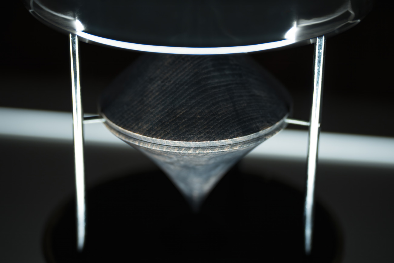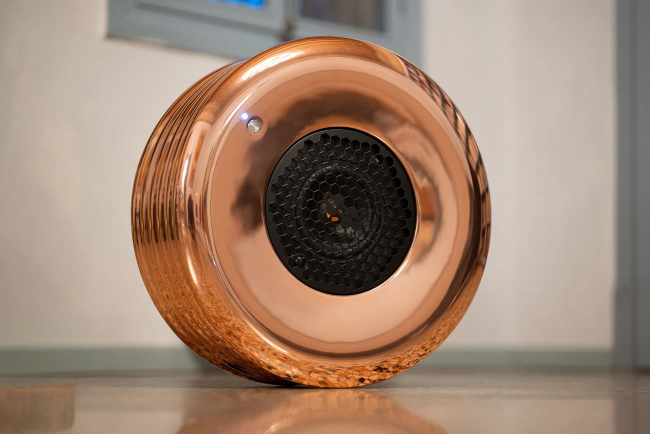 Diffusore stereo wireless a forma di ruota. Design Ron Arad, tecnologia Pellisari. Centocinquanta watt, dodici ore di autonomia, libertà totale.
