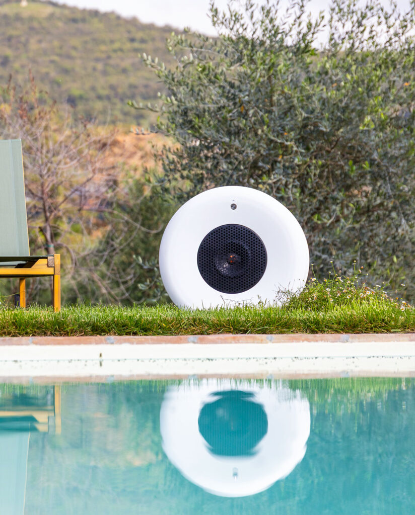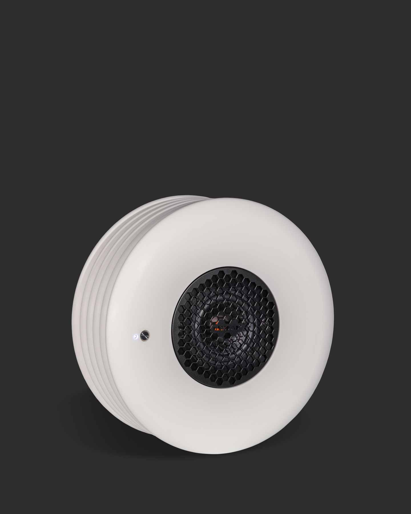 Diffusore in solid surface Krion by Porcellanosa® con guida d’onda. Suono omni direzionale naturale che si espande uniformemente nello spazio.